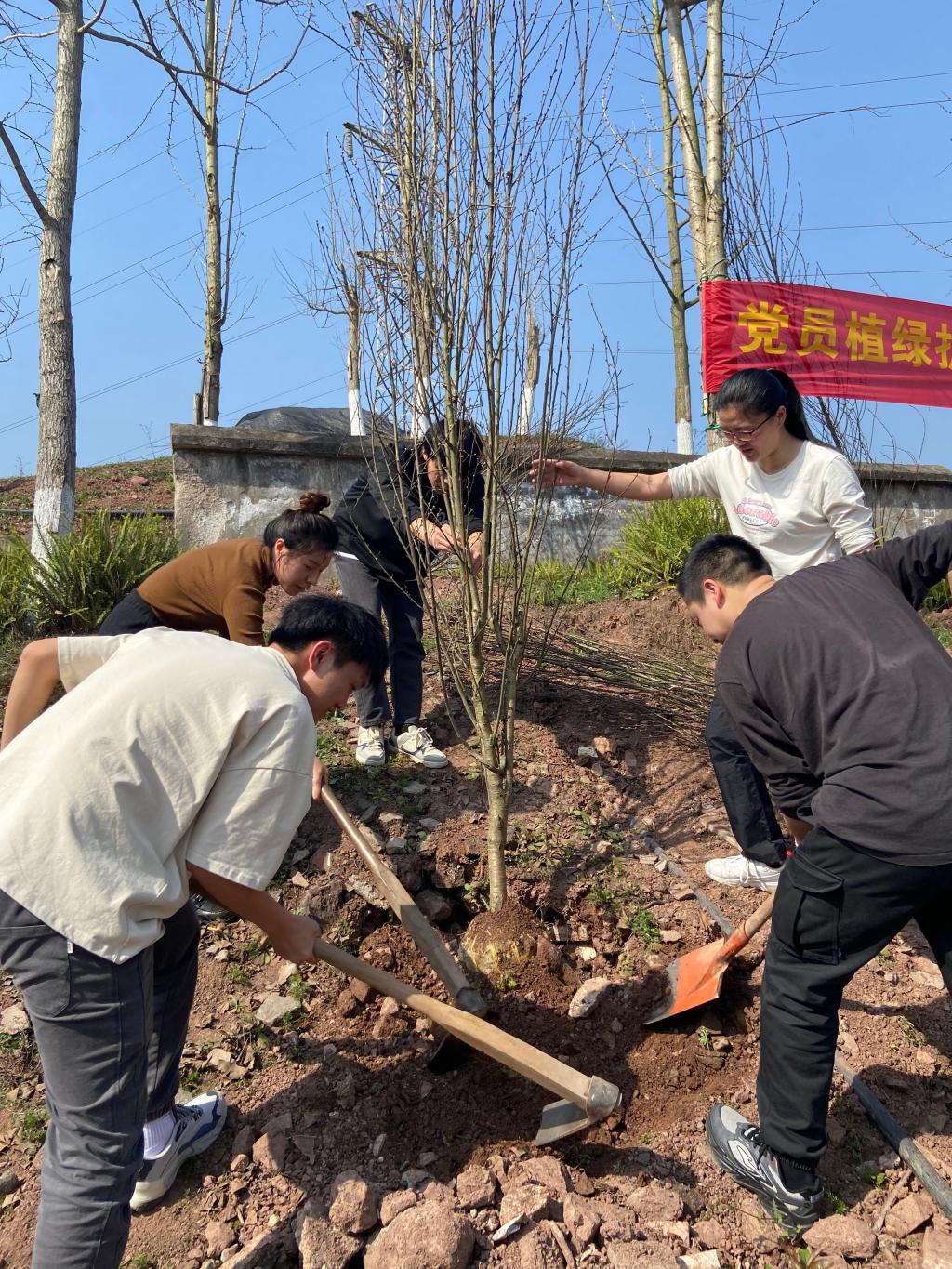 在我国第46个植树节来临之际,为深入贯彻落实习近平生态文明思想和习近平总书记关于全民义务植树的重要指示精神,3月11日,我院党总支组织党员积极参加校党委组织的以“党员植绿护绿共建美丽中国”为主题的党员义务植树活动。