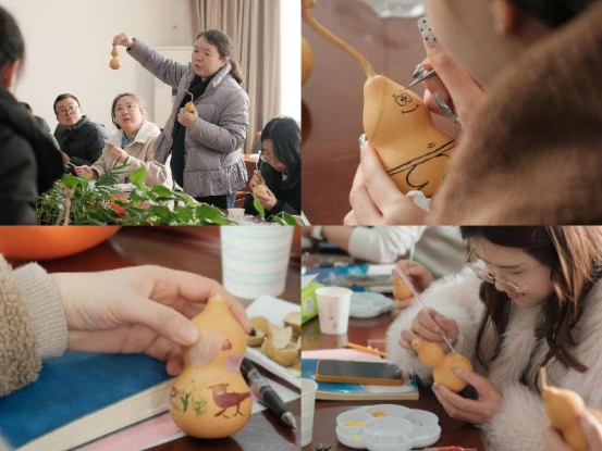 最后,同学们在学院副院长李静教授现场指导下进行了葫芦画创作。