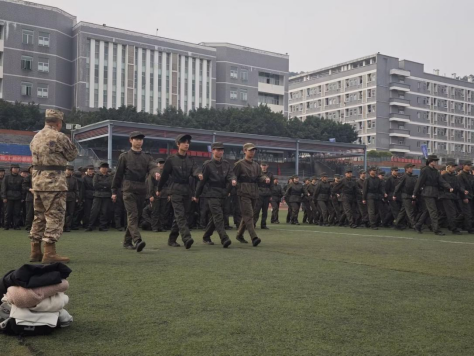 团队聚力,共砺锋芒。队列不齐,主动加练至星夜;动作生疏,结对纠偏无怨言。内务整洁如军营,荣誉意识刻心间。教官严谨指导,细抠每个动作;辅导员暖心相伴,递上姜汤驱寒。铁纪与温情交融,铸就独特迷彩记忆。