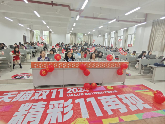 2024年11月11日中午,经管学院携手阿里巴巴对参与校内生产性实践项目——阿里巴巴“双十一”客服的师生开展慰问活动。学校党委副书记郭光亮,经管学院党政负责人及教师代表,企业指导教师参加了慰问活动。