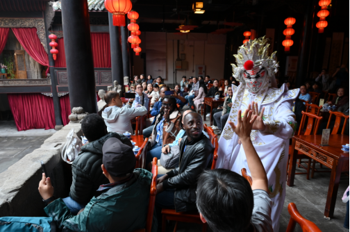 10月30日下午,财经商贸学院总支书记刘兰英带队,组织来自新加坡、马来西亚、泰国、埃塞俄比亚等14个国家的28名“智能建造与智慧城市”高级研修班学员前往重庆湖广会馆参观,并观看非遗主题演出《醉巴渝》。