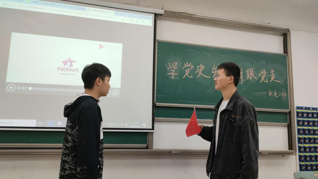 历史是最好的教科书,中国革命历史是最好的营养剂。为了让广大青年知史爱党、知史爱国,4月16日,2019级机电一体化技术2班在求实楼115室组织开展了“学党史,知党情,跟党走”的主题团日活动,班级全体同学积极参与。