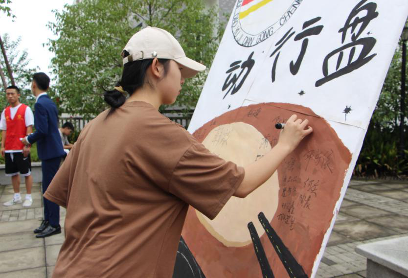 活动期间,志愿者派发“盘行动,从我做起”宣传单,在学生会工作人员主持下,各班志愿者代表们在光盘行动承诺墙上签下了自己的名字,并宣下了“青春光盘行动,从我做起”的誓言。
