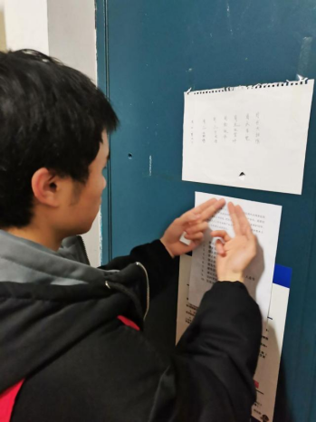 当日,志愿者们逐个寝室宣传消防安全知识。介绍了干粉灭火器、1211灭火器、二氧化碳灭火器三种灭火器的使用情况和使用方法;提醒同学们在寝室遇到火灾时要沉着应对、冷静思考、见机行动;讲解了如何正确选择疏散路线和逃生方法;张贴了防火灾标语海报。