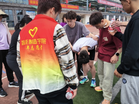 在现场,志愿者们忙碌的身影随处可见。赛前,他们引导参赛队员热身、协助检录。当运动员奋力冲向终点,他们会马上递上一瓶水,搀扶队员,抚慰疲惫,赞美勇气,细心帮助参赛同学收拾起被遗失的物品,及时提供必要的帮助和支持。即便是最后一天,他们仍然毫不松懈。志愿服务并不会使他们处于热闹氛围之外,他们同样怀着激动的心情去观看每一场比赛,为队员们呐喊助威。志愿者们辛勤付出,不仅为运动会增添了一抹靓丽的色彩,也让运动员们感受到了温暖和关爱。