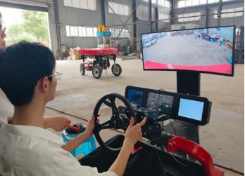 会后,正高级工程师佘小明演示了多功能底盘智能农机的无人作业场景,为师生们讲解智能农机北斗导航系统集成、路径规划、多传感器融合感知、自动避障、远程控制平台核心技术。