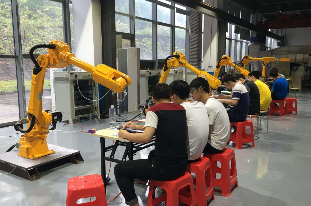 我院是工业机器人操作与运维1+X证书制度试点院校,目前重庆仅三所高职院校取得该资格。工业机器人技术专业是轨道与机电工程系新兴重点专业,在现代智能制造行业,如汽车制造、机械加工等大型企业,采用大量的工业机器人提高工作效率和产品质量。工业机器人技术专业为工业机器人工作站系统的离线仿真、现场编程、安装调试、运行维护、生产管理等工作培养高技术技能人才。