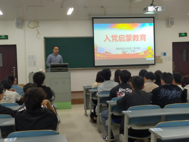 为了激发青年学生的政治热情,帮助学生掌握入党要求和程序,引导学院学生做中国特色社会主义的坚定信仰者和忠实实践者,学院党总支二支部教师党员于10月份分批次开展了入党启蒙教育宣讲活动。本次活动主要由张秉坤、李林芳、莫凤玲等三位辅导员老师主持,2021级全体新生参会。