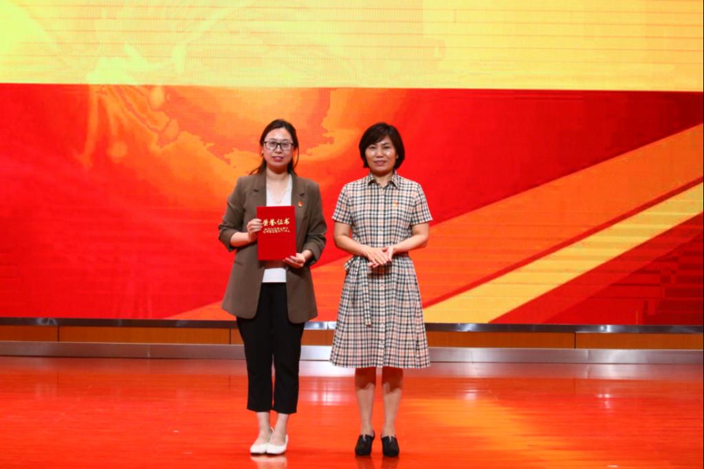 党委副书记龚群英为一等奖获得者莫凤玲颁奖