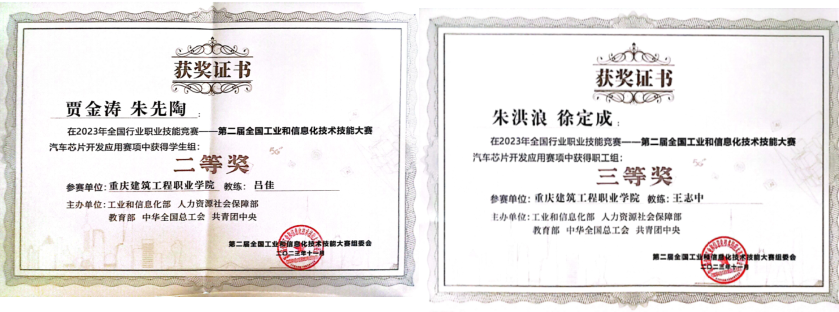 11月15日至18日,2023年全国行业职业技能竞赛第二届全国工业和信息化技术技能大赛决赛在浙江省绍兴市举办。经层层选拔,共有来自29个省(区、市)及新疆生产建设兵团、34家央企457支队伍、1055名选手进入决赛。经过理论考核、实操考核环节的激烈角逐,koko体育智能制造与信息工程学院学生朱先陶、贾金涛荣获“汽车芯片开发应用赛项”学生组全国二等奖,专业教师朱洪浪、徐定成荣获“汽车芯片开发应用赛项”职工组全国三等奖,为重庆代表队和学校争得荣誉。