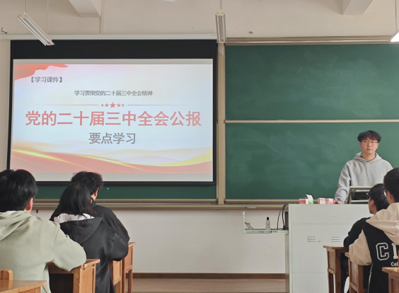 学院学生会主席团成员刘滨瑞带领广大青年学子深入学习党的二十届三中全会精神,刘滨瑞向大家介绍了党的二十届三中全会是在以中国式现代化全面推进强国建设、民族伟业的关键时期召开的一次十分重要的会议,为我们进一步全面深化改革、推进中国式现代化指明了前进的方向,提供了根本遵循。并强调,只有明确个人发展方向与国家发展的紧密联系,才能进一步提升我们的社会责任感和参与社会建设的能力。
