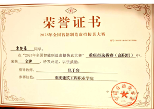近日,在2025年全国智能制造虚拟仿真大赛重庆市选拔赛(高职组)中,我院工业机器人技术专业覃楚豪、刘锐、刘治江三位同学凭借扎实的专业知识、娴熟的操作技能,在激烈的竞争中脱颖而出,荣获一金两银的佳绩。