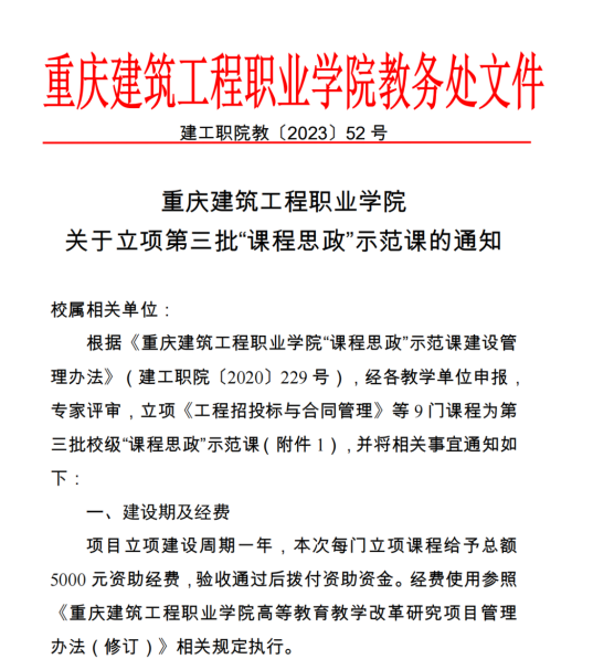 近日,koko体育官网组织开展校级“课程思政”申报活动,经各教学单位申报及专家评审,我院杨茂华老师负责的《工程招投标与合同管理》课程与罗丹老师负责的《钢筋工程量计算》课程,获校级“课程思政”示范课立项。