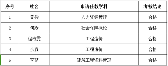 根据koko体育官网关于印发《高等学校教师资格认定教育教学能力考核实施办法(修订)》建工职院〔2023〕197 号的通知精神,建设管理学院于2023年10月18日举行高等学校教师资格认定教育教学能力考核,现将考核合格人员名单予以公示。