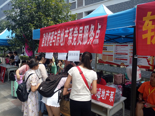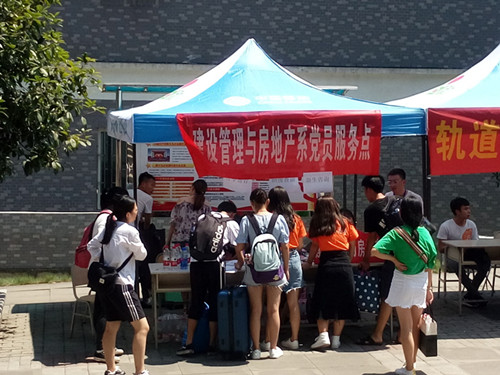 建管系志愿者同学们积极热情帮助接待来自全国各地的新学弟、新学妹。炎炎烈日,阻挡不了迎新师生们的热情,大家在校园内有序为新生解疑答惑、流程指引、报到注册等服务。系学工党支部设置党员服务点,主动帮助新同学及家长存放物品、解答校园学习生活问题。