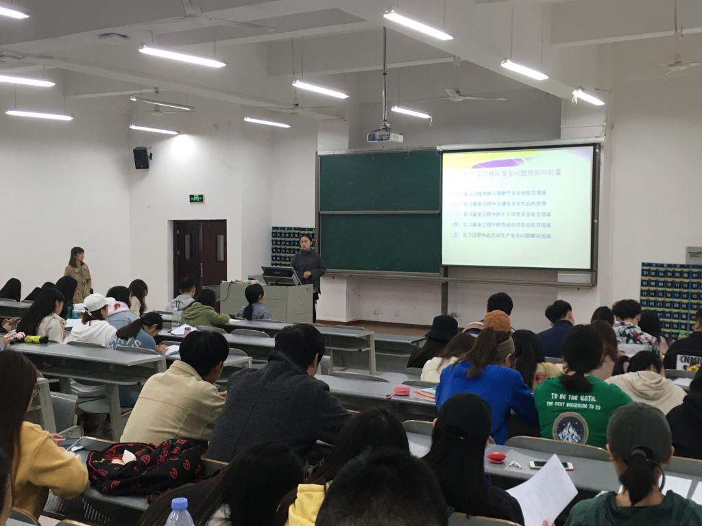 为贯彻落实国家和地方各项安全生产规范和标准、进一步规范我院学生校外实习、有效开展学生顶岗实习工作、强化学生安全责任意识和自我防护意识、预防以及控制实习期间安全事故的发生、切实维护学生的人身和财产安全及各项合法权益,建设管理与房地产系按照教研室于11月分别开展了2018级顶岗实习动员会暨安全教育宣讲会。
