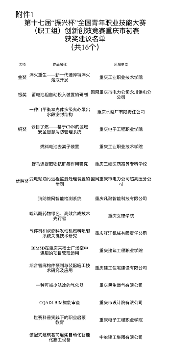 2022年,由团市委联合市人力社保局举办的第十七届“振兴杯”全国青年职业技能大赛(职工组)创新创效重庆市初赛,我院老师积极参加比赛,获得优胜奖,并进入全国复赛。