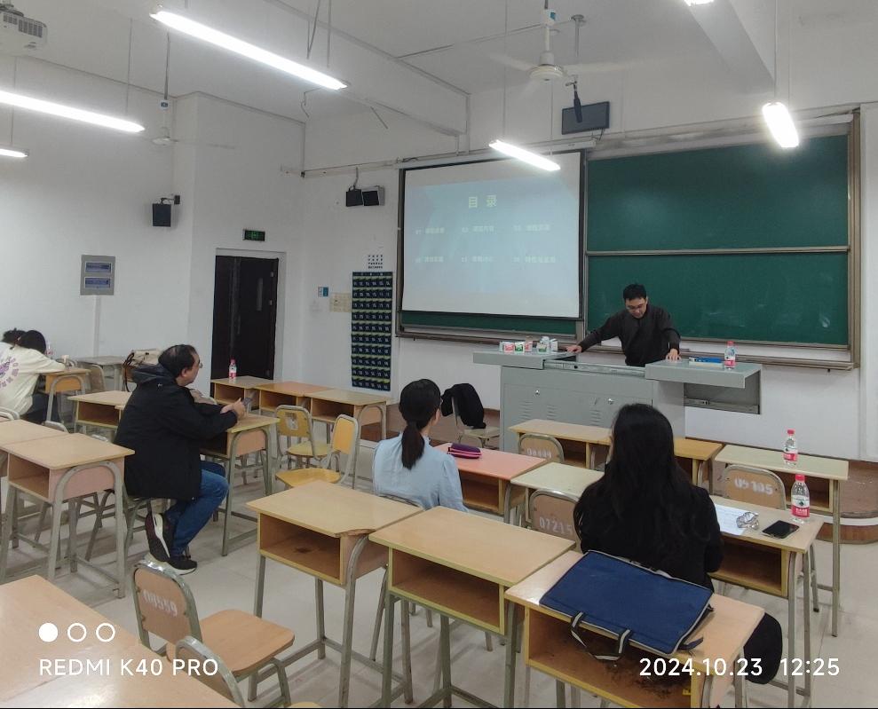 本次专业说课主要面向建设工程管理专业组织。项目管理教研室提前制定好周密的说课计划,廖劲松、杨硕、高倩、全利四位老师按计划依次进行了《建筑工程项目管理》、《建筑工程施工工艺》、《工程项目组织与管理》和《工程经济学A》四门课程的说课。汇报现场营造出一种向善、向好、向上的交流氛围。针对汇报情况,参会师生畅所欲言,分享交流了自己的观点,帮助汇报者进一步修改完善材料。