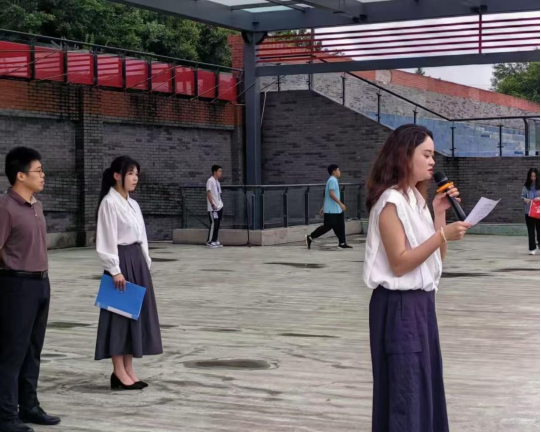 学工办主任王玲老师进行国旗下讲话,通报近期学生工作事宜。她强调,每一道校规都是衡量诚信的标尺,每一次遵守都是成长的见证。学工办始终坚守岗位,为同学们的成长成才保驾护航,引导大家在日常学习生活中践行诚信准则。