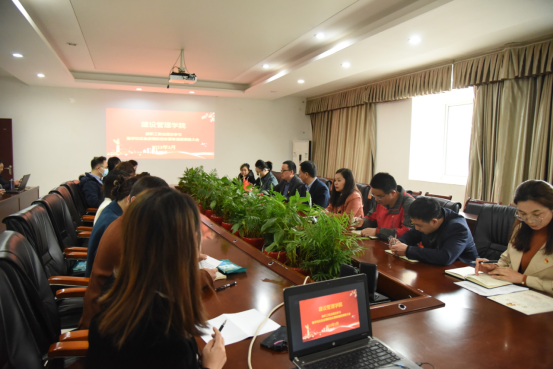 3月24日下午,建设管理学院在201会议室召开学校应急疫情防控志愿者通报表扬大会暨教职工政治理论学习,学校党委书记吴国雄、学院党总支书记、院长杨旗、党总支副书记何浪、全院教职工参加会议。会议分两阶段进行,由党总支书记、院长杨旗主持。