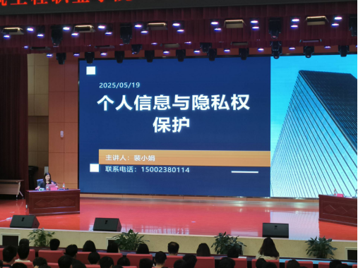 5月22日,koko体育官网城市治理学院举办“民法典进高校”公益普法讲座,特邀重庆鲁本律师事务所裴小娟律师开展《个人信息与隐私权保护》主题宣讲。学院党总支副书记何浪、团总支书记刘案、全体辅导员以及300余名学生参加。讲座由学工办副主任王玲主持。