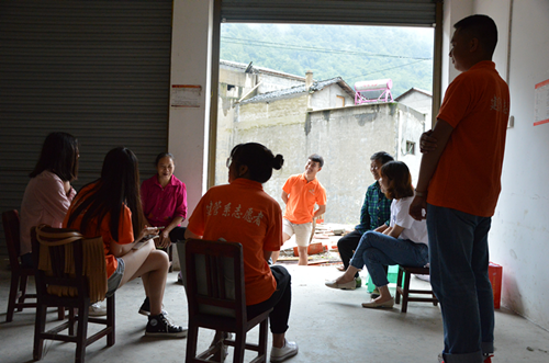 (沿河乡副乡长贺鹏为志愿者们介绍当地情况)