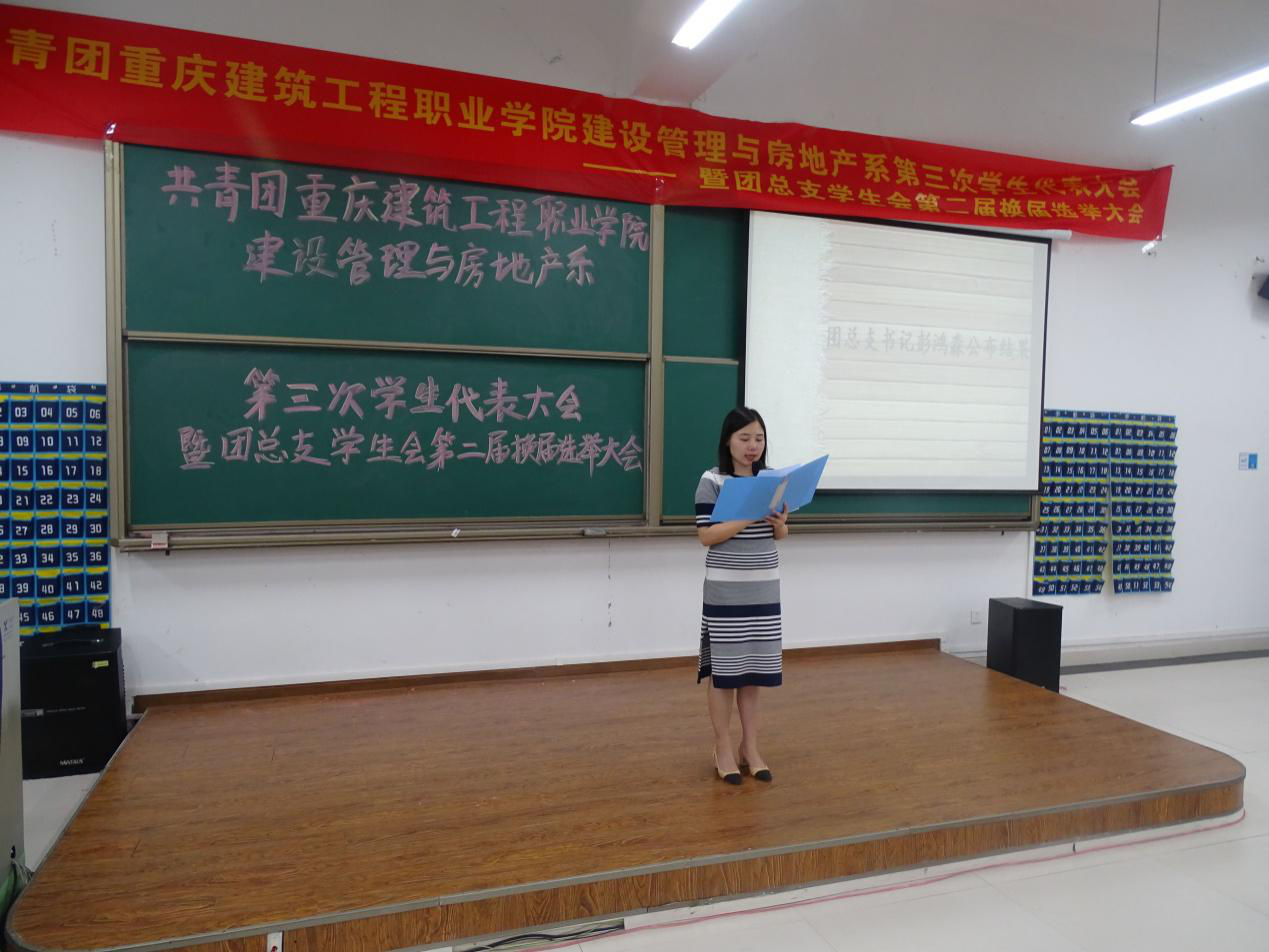 为发挥学生民主自治的作用,促进学生的学习和德智体的全面发展;保障建管系学生会工作的连续性,培养一批新的学生会干部。更好的贯彻落实学院的指示精神,充分发挥学生会的自主职能,大力促进校园文化建设。2018年6月28日,koko体育官网建设管理与房地产系本着“公平、公正、公开”的原则,于求实楼106教室成功召开第三次学生代表大会暨团总支学生会第二届换届选举大会。本次大会邀请了系党总支王廷杰书记、系党总支学工支部廖岚书记、系党总支学工支部组织委员王玲老师、系党总支学工支部宣传委员罗凯丽老师、系团总支彭鸿淼书记、系全体辅导员、系学工干事、院学生会代表、院团委代表、各系团总支学生会代表、我系学生会代表及各班学生代表参与大会。