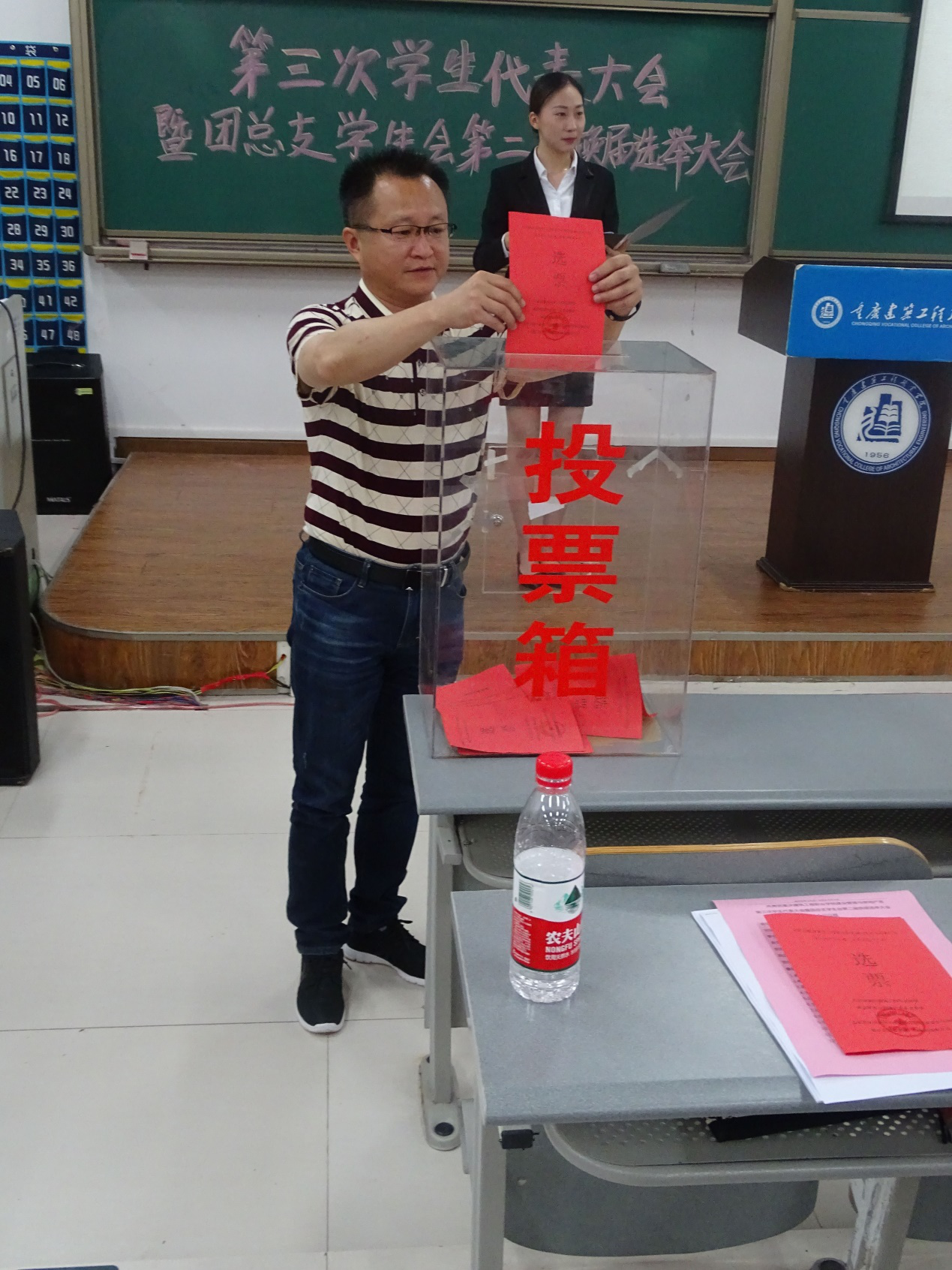 在此之后,主持人向大家介绍本次团总支学生会换届选举的27个竞选岗位和宣读选举注意事项。并由总监票人彭鸿淼书记当众验票,工作人员发放选票。其后,34位朝气蓬勃的候选人依次上台发表竞选演说。在候选人精彩的竞选演说完毕后,大会进入最激动人心的投票、计票环节。最终,在总计票人张章,计票人扬义、殷雷顺、许津营、刘欢、张琪琪的努力下统计出各位候选人最终获得的票数,由团总支彭鸿淼书记当场公布27位入选成为新一届学生会干部的名单及成绩。