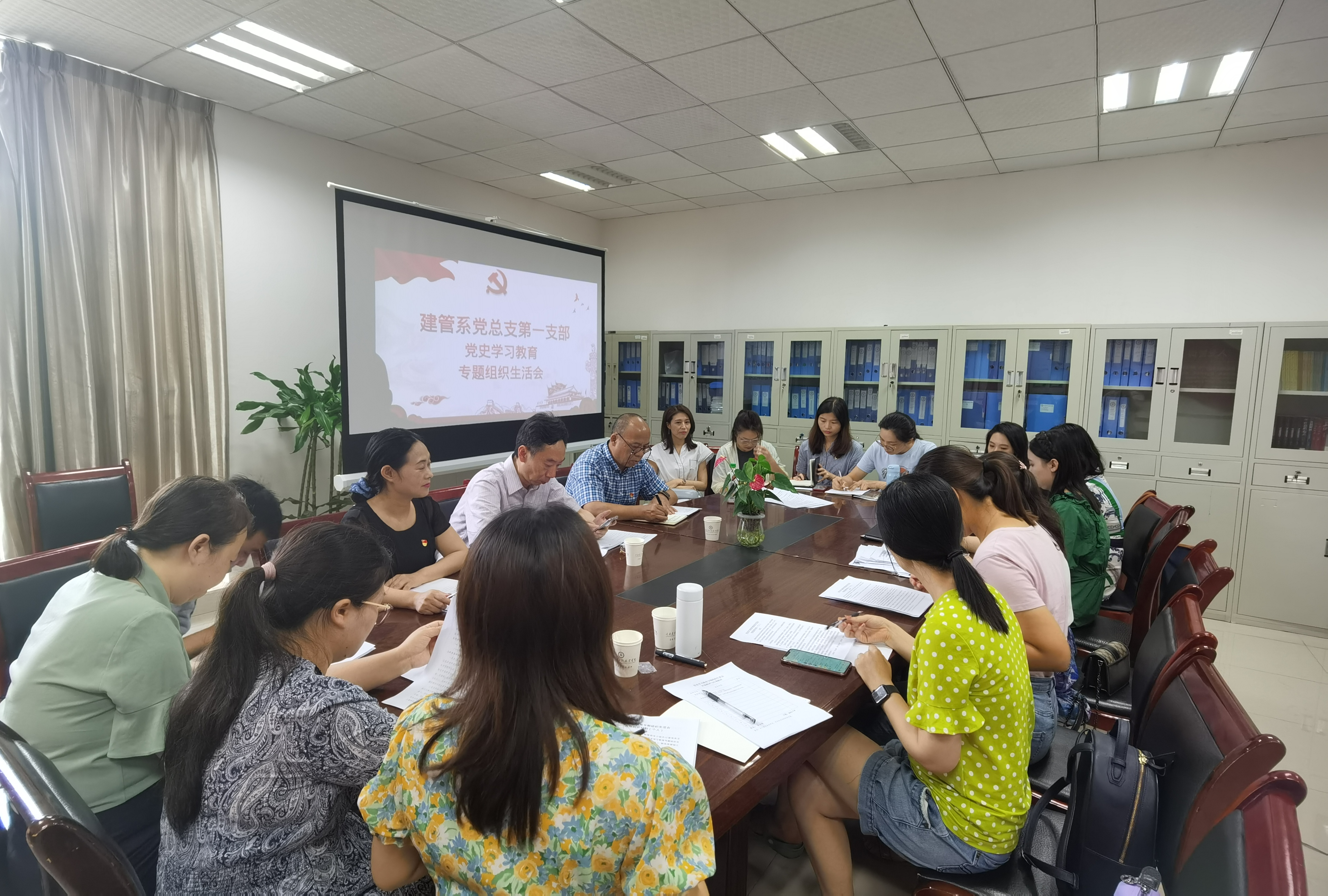 7月9日下午14:00,建管系党总支第一支部全体教师党员在2-224召开党史专题组织生活会,支部书记余佳佳主持,邹晓波书记、建管系党总支书记黄霁列席会议。