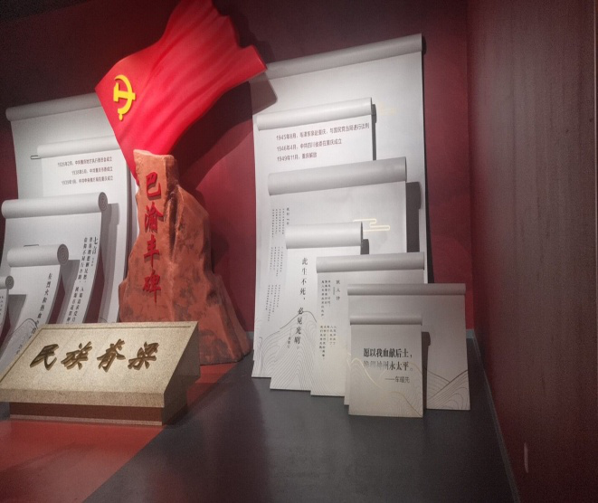 此次参观的两个展览是重庆市档案馆为庆祝建党100周年而精心打造的。《巴渝丰碑》展由重庆市档案馆与中共重庆市委党史研究室联合布展,是重庆地区第一个全面、系统、生动反映中国共产党重庆革命史的综合性固定陈列展。共展示档案、图片479张,制作模拟实景6处。展览分“巴山渝水 革命洪流”“血雨腥风 屡仆屡起”“雾都明灯 虎穴坚持”“风云际会 浴火重生”四个单元,全面反映了中共重庆地方党组织自1926年成立以来,在党中央领导下,团结带领重庆各族人民前仆后继、不怕牺牲,夺取新民主主义革命胜利的奋斗历程。