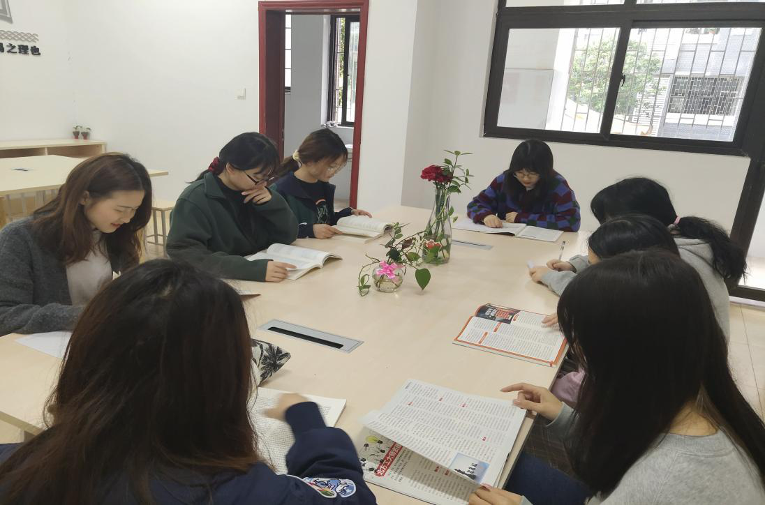 四号公寓党支部自习室读书分享场景