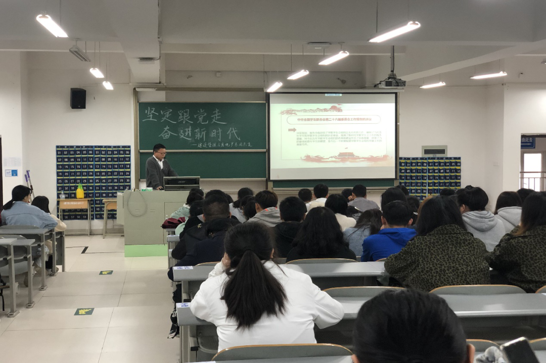 为深入学习习近平总书记贺信和党中央致词精神,贯彻全国青联十三届全委会及全国学联二十七大精神,建设管理与房地产系团总支于10月20日中午在求实楼208教室组织开展了“坚定跟党走 奋进新时代”主题团日活动。