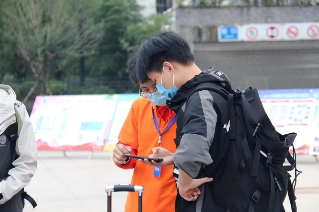 迎新途中,他们始终最热心。一次次地答疑解惑,一次次地指引接待,他们始终用最诚挚的笑容,迎接每一个初遇的萌新。