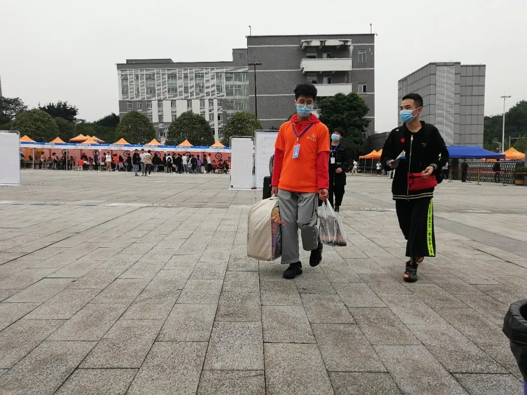 迎新现场,各部门、各系部早早集结、有序就位。疫情防控常态工作下,为确保新生平安入学,学校进行了周密部署,进校前测温、验码、核对身份,一项也不能少。而熙熙攘攘的人群里,那一抹建工“橙”足够让远离家乡的萌新们安心。他们积极热情地为初来乍到的新同学解答疑惑、搬运行李、指引接待,有条不紊地引导他们完成新生报到的所有程序。