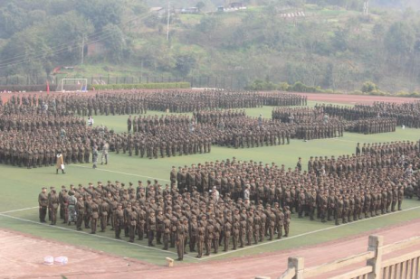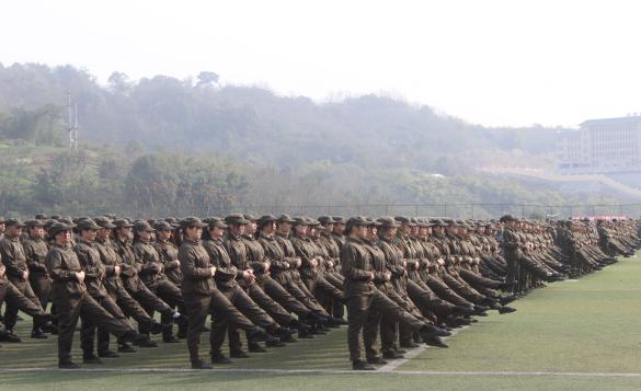 整齐划一、步伐一致、昂首挺胸、眼神坚定。一次次训练并没有让他们劳累,一声声口号正是他们的精神。