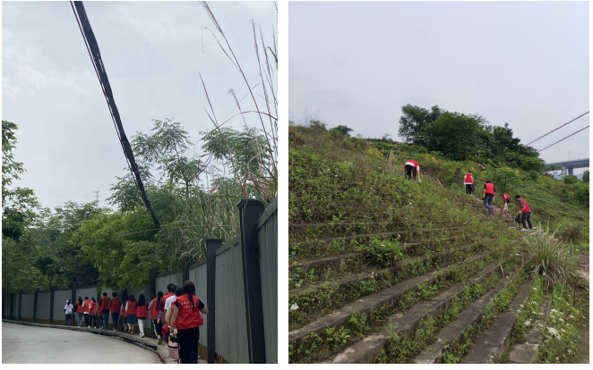为保证志愿服务活动的顺利进行,在活动开始前,志愿者们准时集合在校门口并完成签到,相关负责人对于志愿者们讲解了本次活动的注意事宜,随后便一起排队走到峡口镇河边。一切准备就绪后,志愿者们开始自发组成小组走到阶梯上,弯腰拾起地上白色垃圾、烟头,不放过任何的角落。清理期间,志愿者们充分发扬不怕脏、不怕累的精神,相互配合、分工协作,积极争当生态保护的倡导者、践行者和传播者。经过大家的共同努力,河流边的环境得到了很好地改善,环境变得更加美观。
