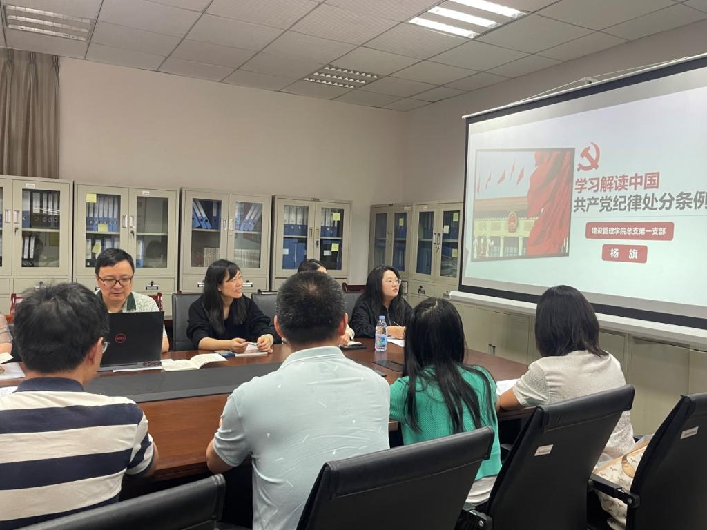 为了切实抓好新修订的《中国共产党纪律处分条例》(以下简称“条例”)的学习贯彻执行,强化党员干部的规矩意识、纪法意识、廉洁意识,5月29日中午,建管学院党总支第一支部在2-224组织开展学习《中国共产党纪律处分条例》专题党课活动,一支部全体党员参加。党课由总支书记杨旗主讲。
