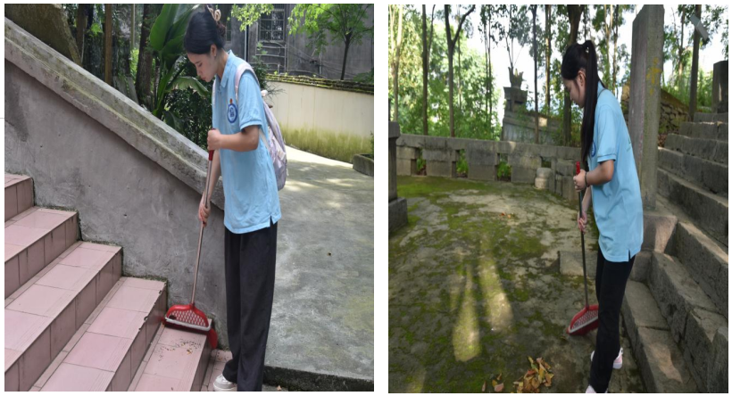 实践团成员们为提高大家对森林保护的意识,共同维护绿色生态环境,行走在烈士墓的山林间,不放过任何一处垃圾,并将陵园道路内的残枝落叶清扫干净,用自己的双手为烈士园陵营造一个整洁、肃穆的环境。号召大家共同保护环境,从自身做起,从现在做起,为美化环境贡献出自己的一份力量。