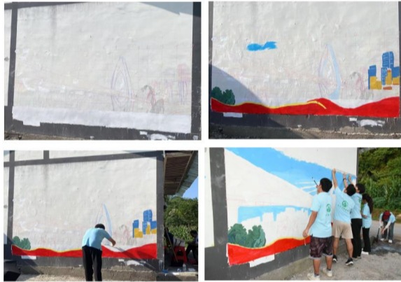 这方墙壁也承载着超越审美的深层价值。团队前期调研发现,同连村公共空间缺乏文化标识,人居环境亟待提升。墙绘选址同连村的主干道旁的一间白墙青瓦的民居山墙上。以“新建造”主题呼应专业帮扶实践。艺术唤醒乡村自信,专业解决治理痛点,墙绘是空间再造的起点,更是青年智慧与乡土需求的深度对话。