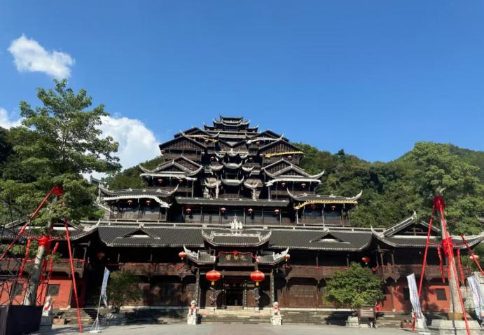 随后,实践团前往蚩尤九黎城,沉浸式体验苗族特色文化。在这座集苗族历史、文化、建筑艺术于一体的标志性建筑群中,团队成员重点学习了苗族特色建筑的构造与寓意,从吊脚楼的精巧设计到九黎宫的宏伟布局,无不感叹苗族先民的智慧。