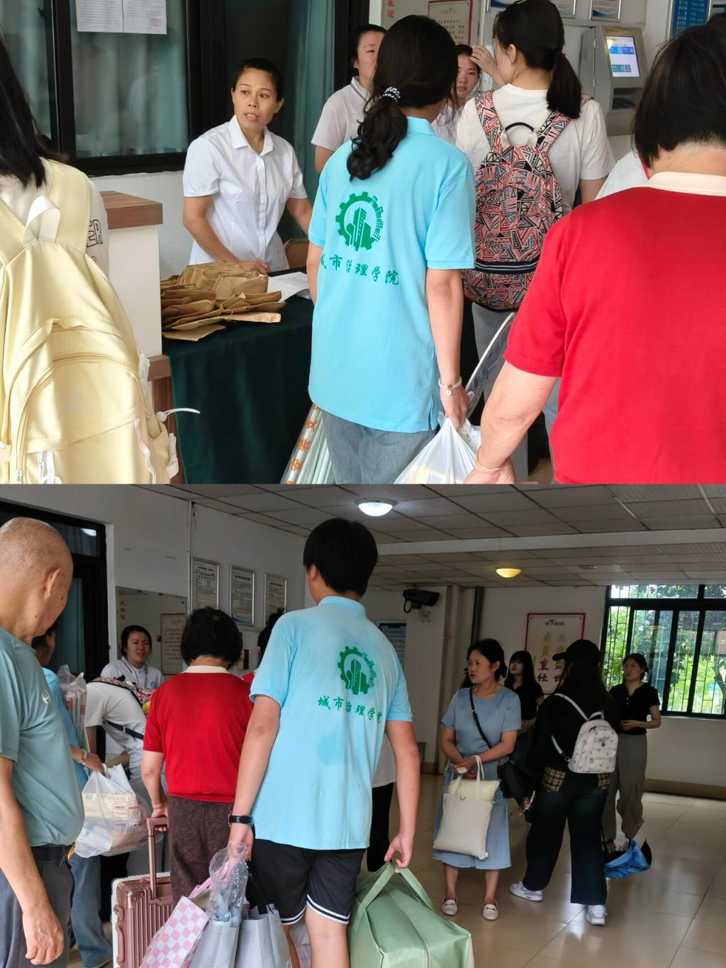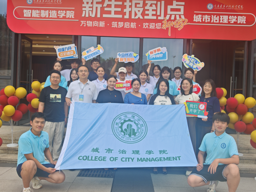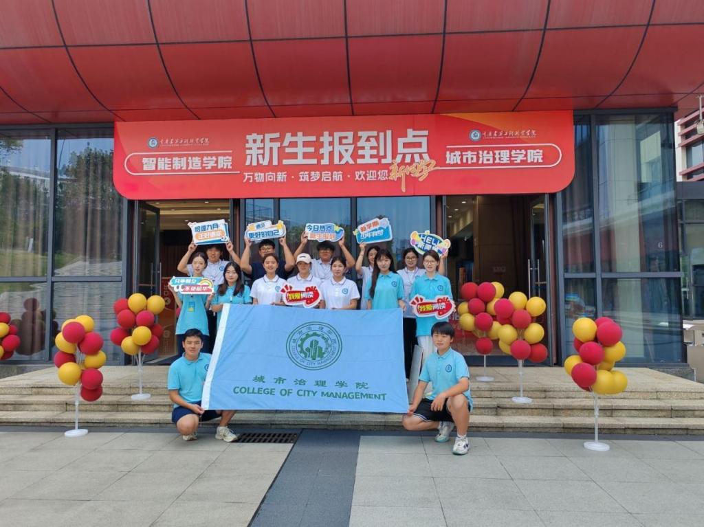 在迎新现场,“欢迎新同学”的横幅格外醒目,校园内彩旗飘扬,处处洋溢着热烈而温馨的氛围。城市治理学院精心设置了多个迎新服务点,身着统一服装的志愿者们热情地为新生和家长们提供引导、咨询和行李搬运等服务,让初来乍到的新生们感受到家的温暖。