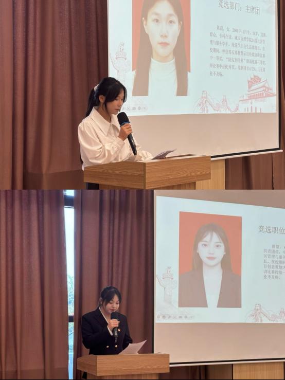 中场休息后,主席团、综合部等岗位候选人依次上台,在3分钟内结合个人经历,阐述对岗位的认知与工作规划。竞选结束后, 监票人刘竹倩、杨曦林等现场展示投票箱与选票,主持人说明无记名投票规则,全体代表有序投票,随后工作人员统计选票。