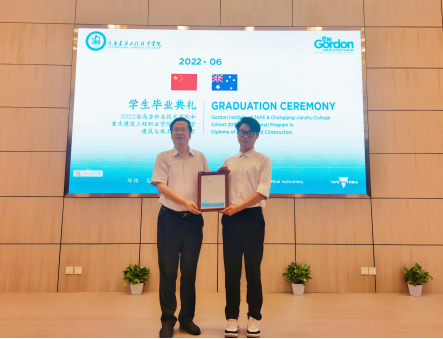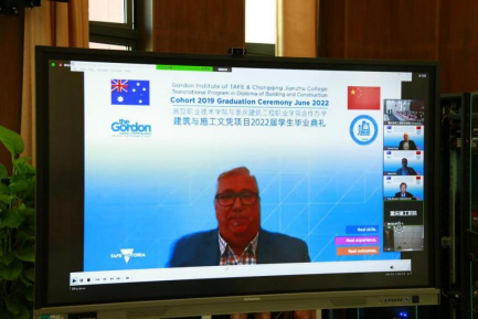 典礼仪式上,澳大利亚高登职业技术学院副校长Jana Perera、设计与建筑系主任Wayne Ketchen分别对中外合作办学项目2022届毕业生表示了热烈祝贺,热情回顾了两校合作历程,充分肯定了两校在合作办学和国际交流方面所取得的可喜成绩。智能建造学院教师代表雷李梅致祝福辞,2022届中外合作办学班毕业生代表付才艺作了发言。现场播放了两校老师精心录制的祝福视频,共同回忆同学们三年学习和生活的点点滴滴,视频中短短的几句话,饱含了老师们的惜别之情和对未来的美好祝福。