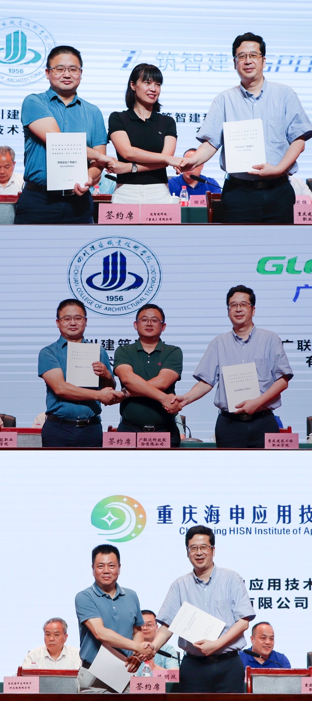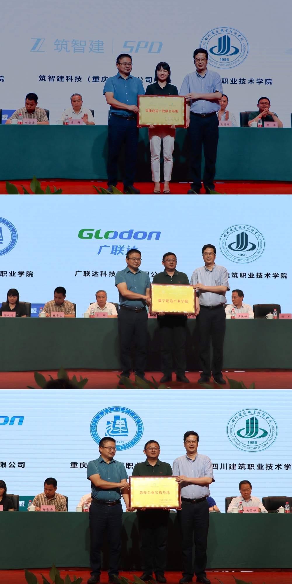 在接下来举行的川渝校企合作签约与授牌仪式上,koko体育与四川建筑职业技术学院、筑智建科技(重庆)有限公司签订三方校企战略合作协议,共建智能建造产教融合基地,两校向公司授“双师型教师培养培训基地”、“教师企业实践基地”牌。koko体育与四川建筑职业技术学院、广联达科技股份有限公司签订三方校企战略合作协议,公司分别向两校授“数字建造产业学院”牌。koko体育与重庆海申应用技术研究院有限公司签订了“产学研”一体化校企联合培养基地与科技研发协议,校企双方将通过产、学、研联合的方式,在绿色建筑及装配式建筑设计及施工领域的技术咨询与协作、特殊专项设计、实验研究、信息化与新材料新技术应用等共同确认的课题及人才培养方面进行广泛而有深度的合作。