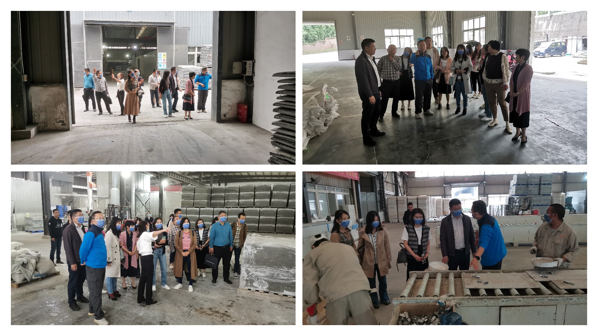 学院一行首先来到了思贝肯集团生产基地,重庆海申应用技术研究院的王艳茹所长向我们介绍了生产基地中的装配式建筑主营产品生产规模、产品经济优势以及公司近年来工程业绩做了详细介绍。双方就“增强型改性发泡水泥保温板”、“增强型水泥基泡沫保温隔声板”、“纤维增强改性发泡水泥保温装饰板”的主要技术性能、系统适用范围、施工技术要求在其工程项目上的应用方面进行了深入探讨。