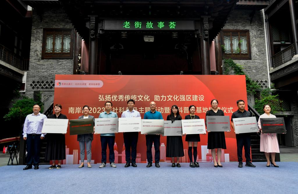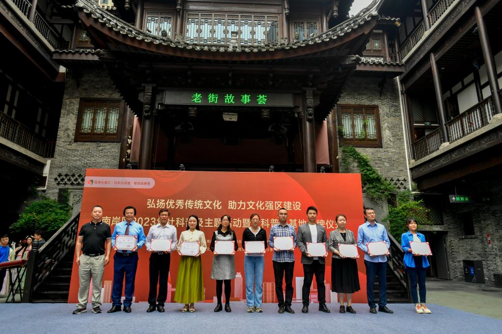 为促进《重庆市科学技术普及条例》的贯彻落实,加强社会科学普及阵地建设,学校精心组织首批“南岸区人文社会科学普及基地”申报工作,经过层层评选,获批建设“koko体育官网智能建造科普基地”“重庆数字非遗科创基地(koko体育官网)”“koko体育官网建筑思政馆”;此外,koko体育教师李静、车延年、黄利芳、袁明兰被命名为“南岸区人文社会科学普及专家”。社科普及主题活动暨社科普及基地授牌仪式近日在弹子石老街王家大院举行。