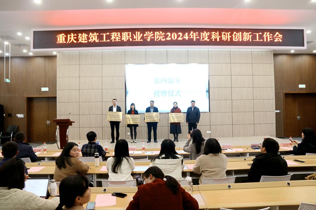 接着,由校长郑周练分别为“重庆市建筑产业数字化技术科教融汇基地”“重庆市绿色低碳建筑协同创新中心”“重庆市建设工程安全技术协同创新中心”“重庆市建设工程消防技术研究中心”四个平台授牌。
