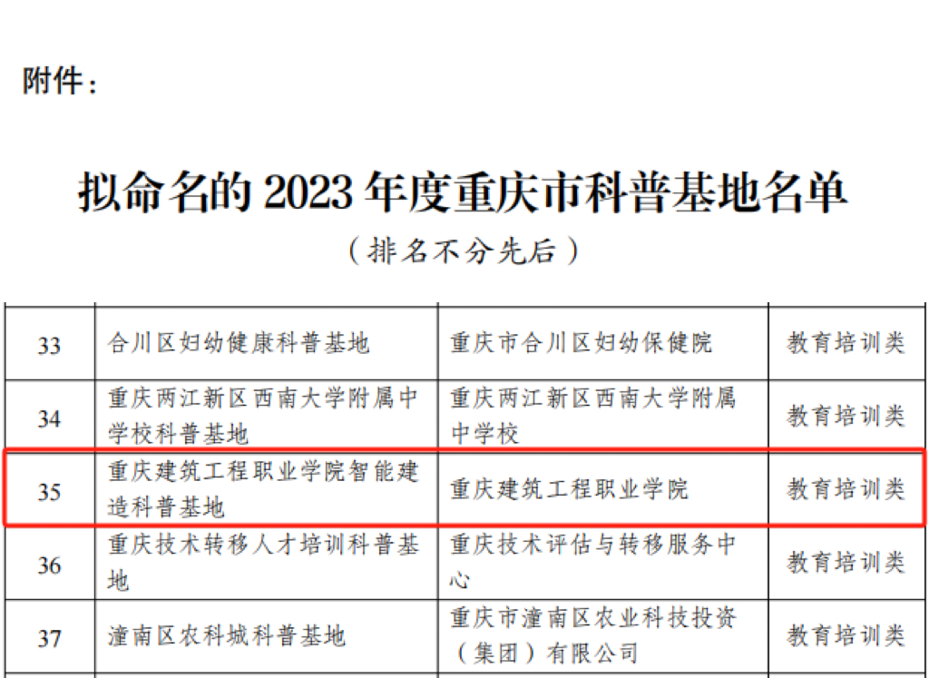 近日,按照《重庆市科普基地创建及管理办法》有关规定,市科普工作联席会议办公室组织开展了2023年度重庆市科普基地申报、评审工作。经区县科技局推荐、专家评审和会议审议,拟命名45家重庆市科普基地,koko体育“智能建造科普基地”获批2023年度重庆市科普基地。