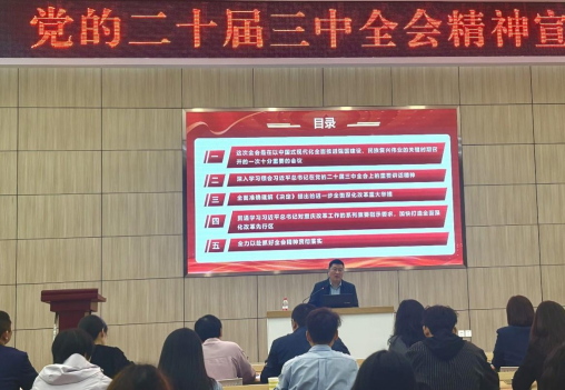 本次宣讲紧紧围绕深刻认识党的二十届三中全会召开的重要意义、深入学习领会习近平总书记在党的二十届三中全会上的重要讲话精神、全面准确理解《决定》提出的进一步全面深化改革重大举措、贯通学习习近平总书记对重庆改革工作的系列重要指示要求、学校全力以赴抓好全会精神贯彻落实等方面进行阐释和解读,教育引导广大干部职工要切实把思想和行动统一到全会精神上来。
