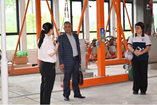 访问期间,代表团一行还参观了学校电梯产业实训基地、新能源汽车实训基地、轨道交通综合基地、建筑产业现代化实训基地等,对koko体育先进的实训设备、产教融合教学模式及学生精湛的专业技能给予高度评价。走进建筑产业现代化实训基地,嘉宾们驻足观摩学生操作轻质墙板安装机器人时,加德满都理工学院校董Pandey先生赞叹道:“贵校的实训条件与国际前沿接轨,学生实践能力优秀!”